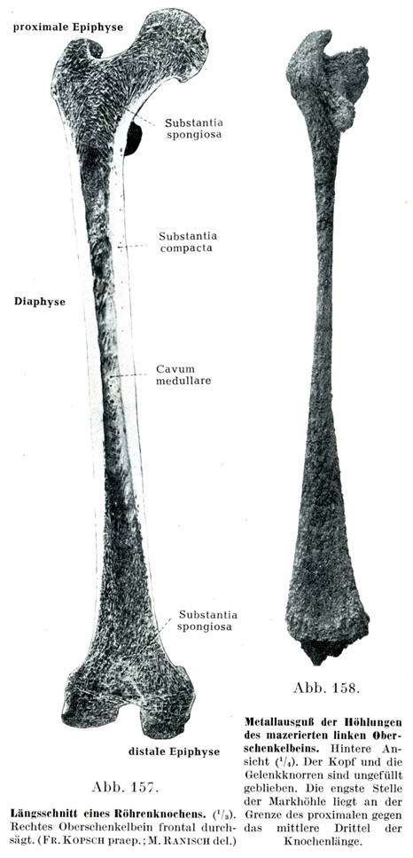 [図157]管状骨の縦断(1/3)右の大腿骨を前額断したところ.