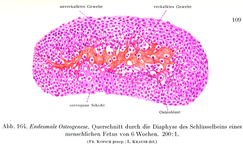 [図164]結合組織内骨発生 胎生6週の人胎児の鎖骨骨幹の横断.
