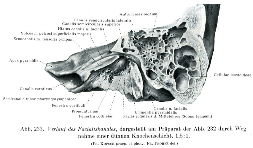 [図233]顔面神経管の経路 図232と同じ標本で,薄い骨層を除去して示す×1.5