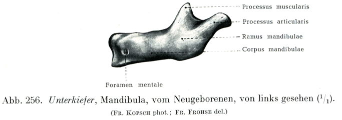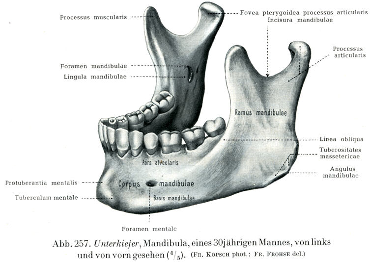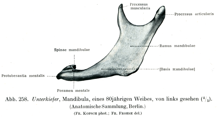 [図258]80才の女子の下顎骨 左からみる(4/5)(ベルリンの解剖学標本集より)