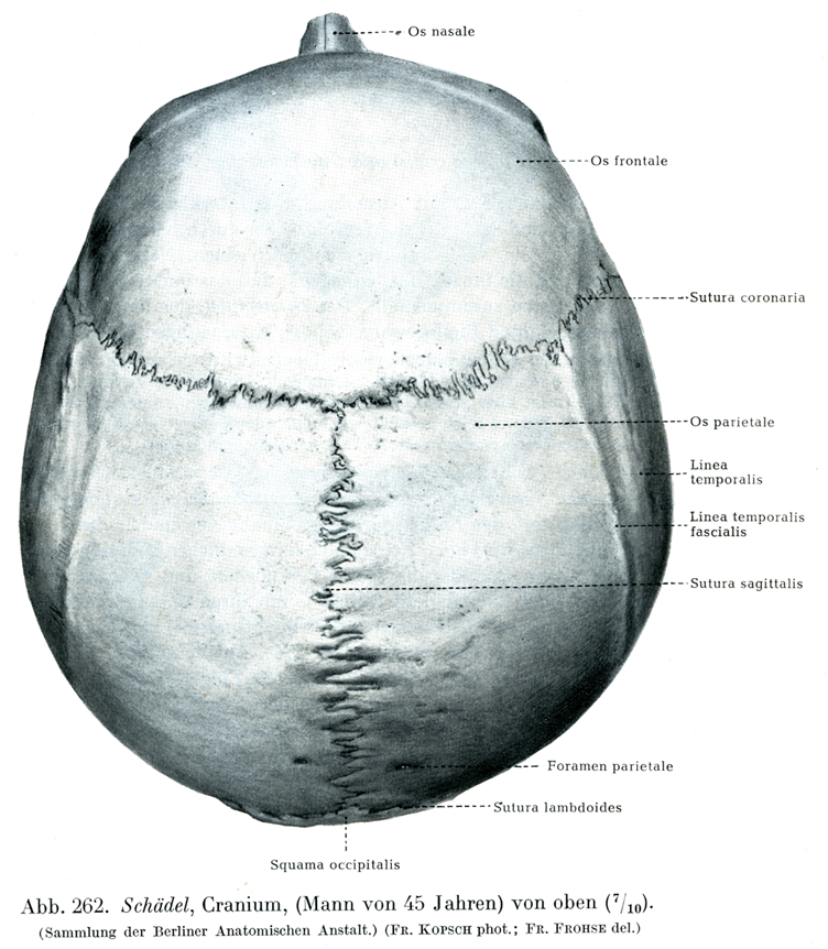 [図262]頭蓋45才の男子,上からみる(7/10) (ベルリン解剖学教室所蔵の標本)