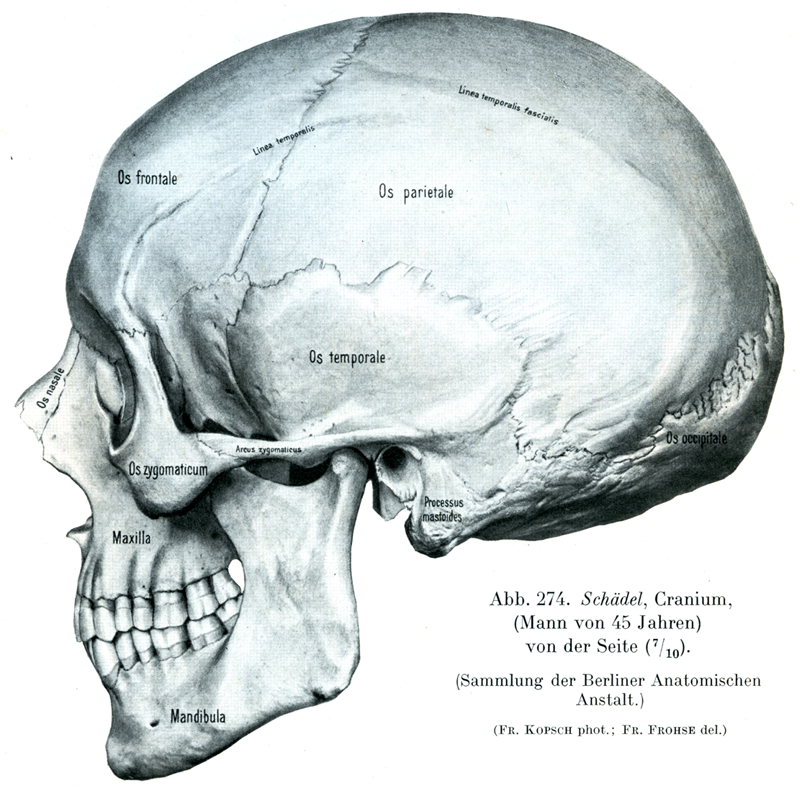[図274]頭蓋 45才の男, 側方からみる(7/10) (ベルリン解剖学教室所蔵の標本)