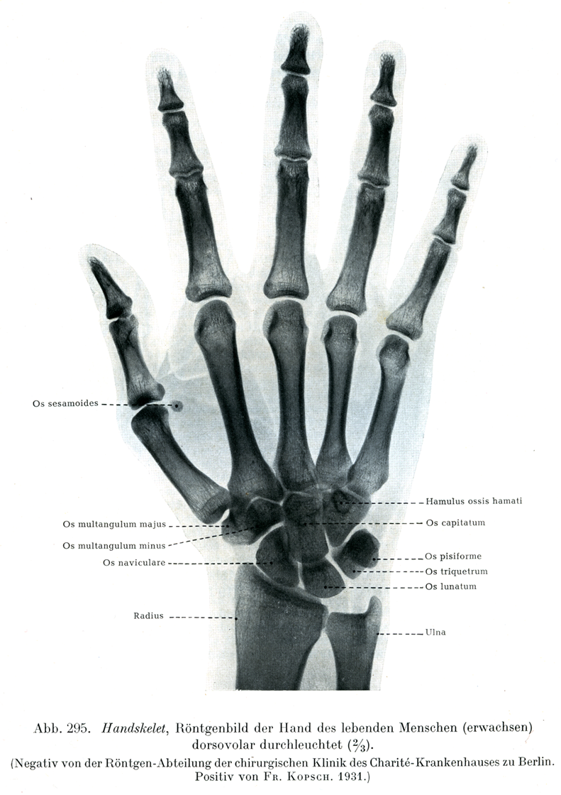 生体(成人)の手のX線像.背掌照射(