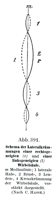 β)前額面内での弯曲:側弯Skoliose(図391)