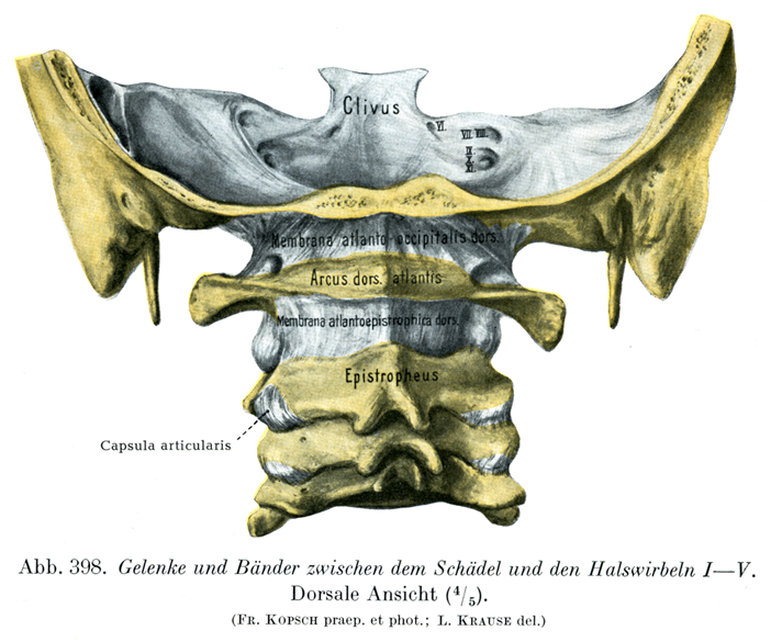 [図398] 頭蓋および第1~5頚椎のあいだの関節と靱帯 後面(4/5)