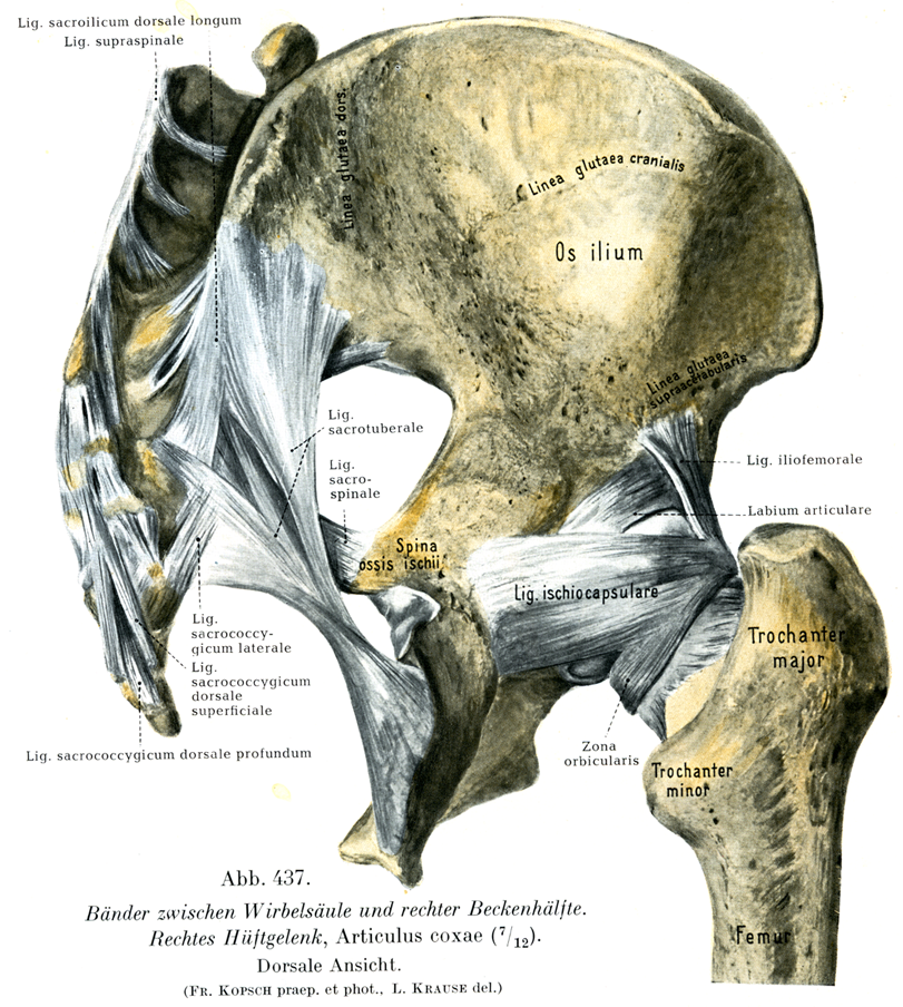 [図437] 脊柱と骨盤右半とを結ぶ靱帯,右の股関節 後面(7/12)