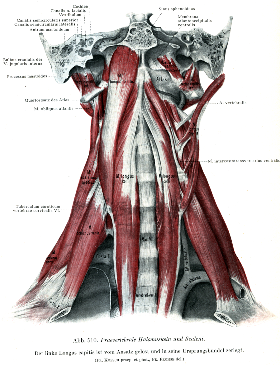 椎骨前面にある頚部の筋と斜角筋群