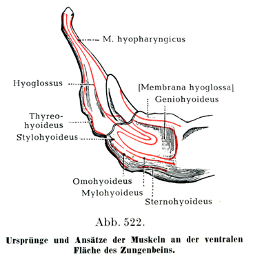 変異:Theileによればオトガイ舌骨筋のすぐ外側に1つの小筋束がみられるのが普通であって,これは舌骨の大角の基部に達している.