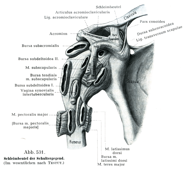 [図531] 肩部の粘液嚢 (大要はTestutによる).