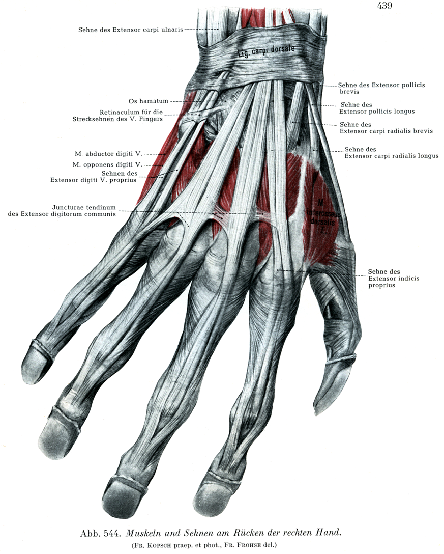 1. 虫様筋Mm. lumbricaies, Spulwurmmuskeln. (図545, 546)