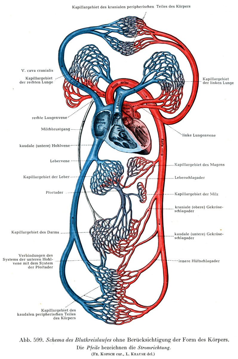 体の形を考慮の外においた血液循環の模型図