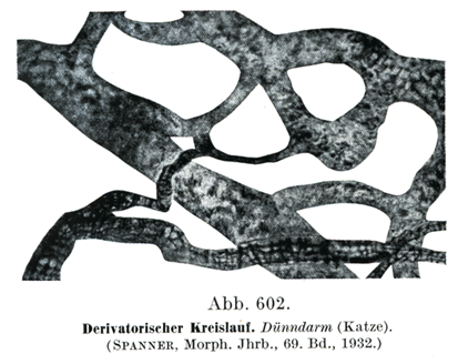 [図602] 動静脈吻合(短絡循環)derivatorischer Kreislauf小腸 (ネコ) (Spanner, Morph. Jhrb., 69. Bd.,1932)