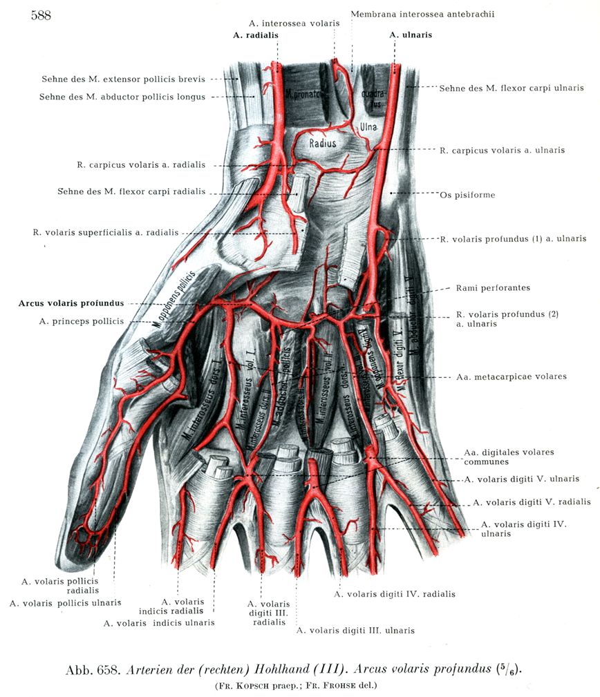 [図658] 手掌(右)の動脈(III) 深掌動脈弓Arcus volaris profundus(5/6)
