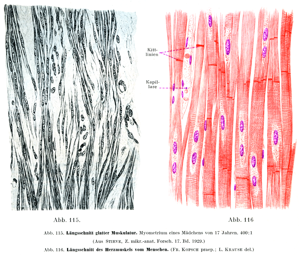 [図115]平滑筋の縦断17才の女の子宮筋層.×400. (Stieve, Z. mikr.-anat. Forsch.17. Bd.,1929. )