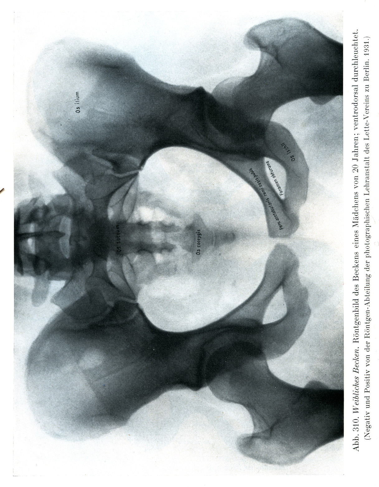 20才の少女の骨盤のレントゲン写真, 腹背照射.