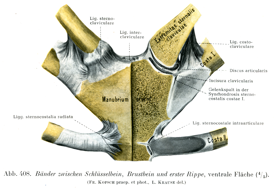 [図408] 鎖骨・胸骨・第1肋骨のあいだの靱帯 前面(