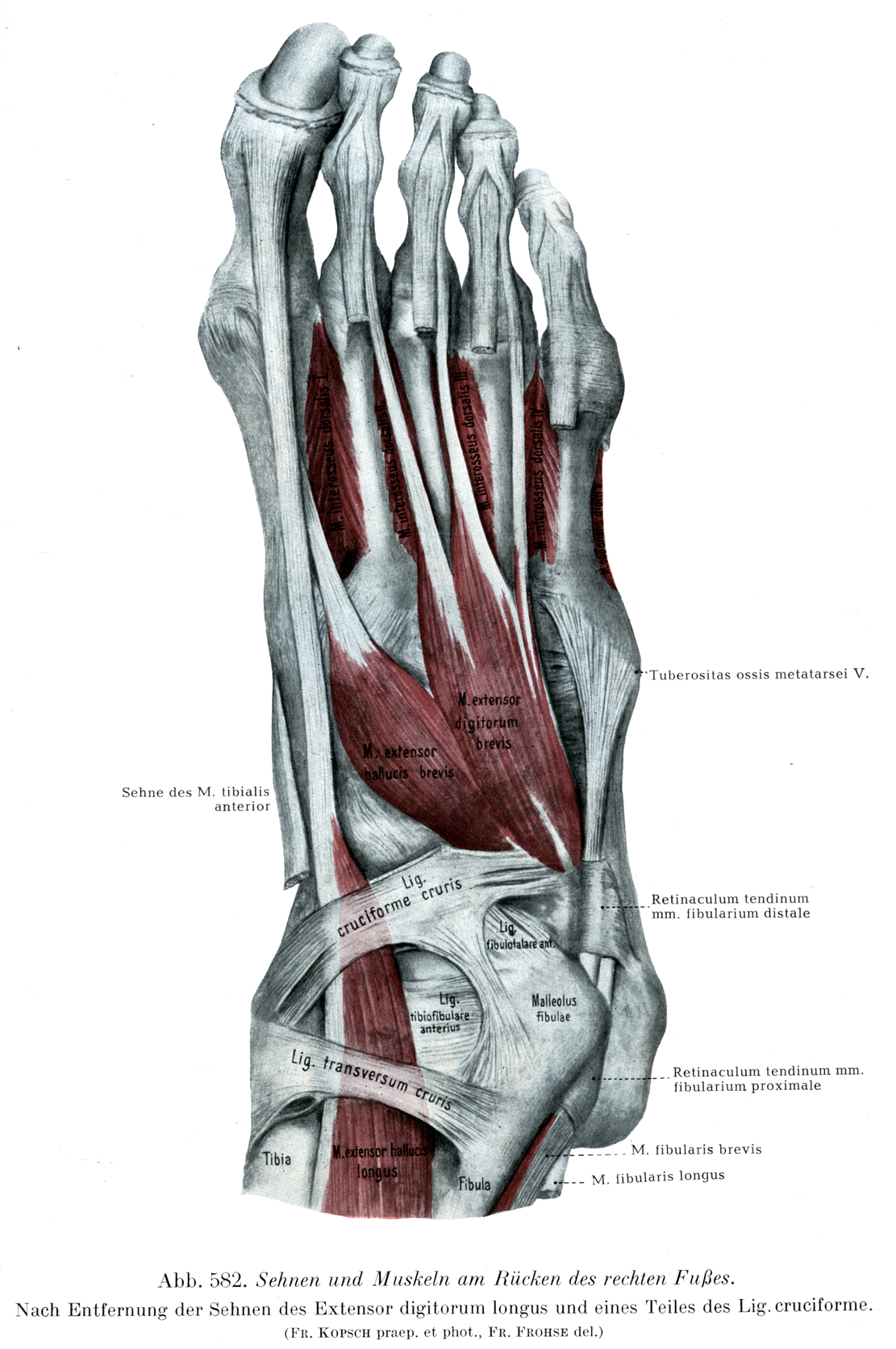 長指伸筋の腱および十字靱帯の一部を取り去ってある.