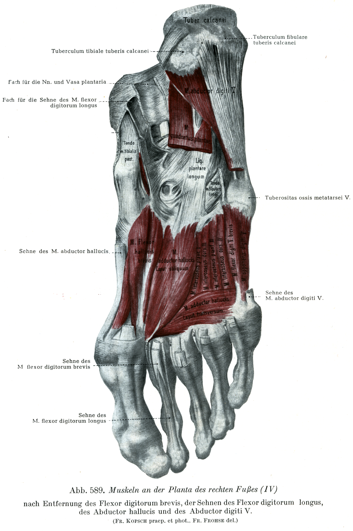 短指屈筋を取り去り,長指屈筋,母指外転筋および小指外転筋の腱を取り去ってある.