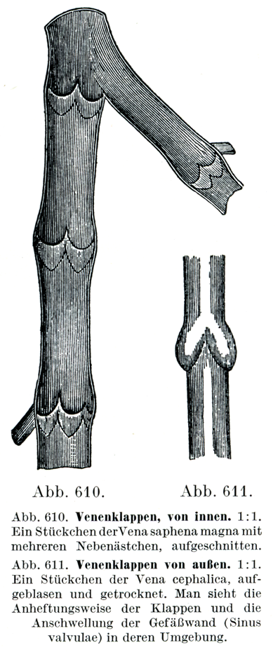 内部からみたところ(×1) 大伏在静脈の一部,いくつかの側核をもつところ,切り開いてある.