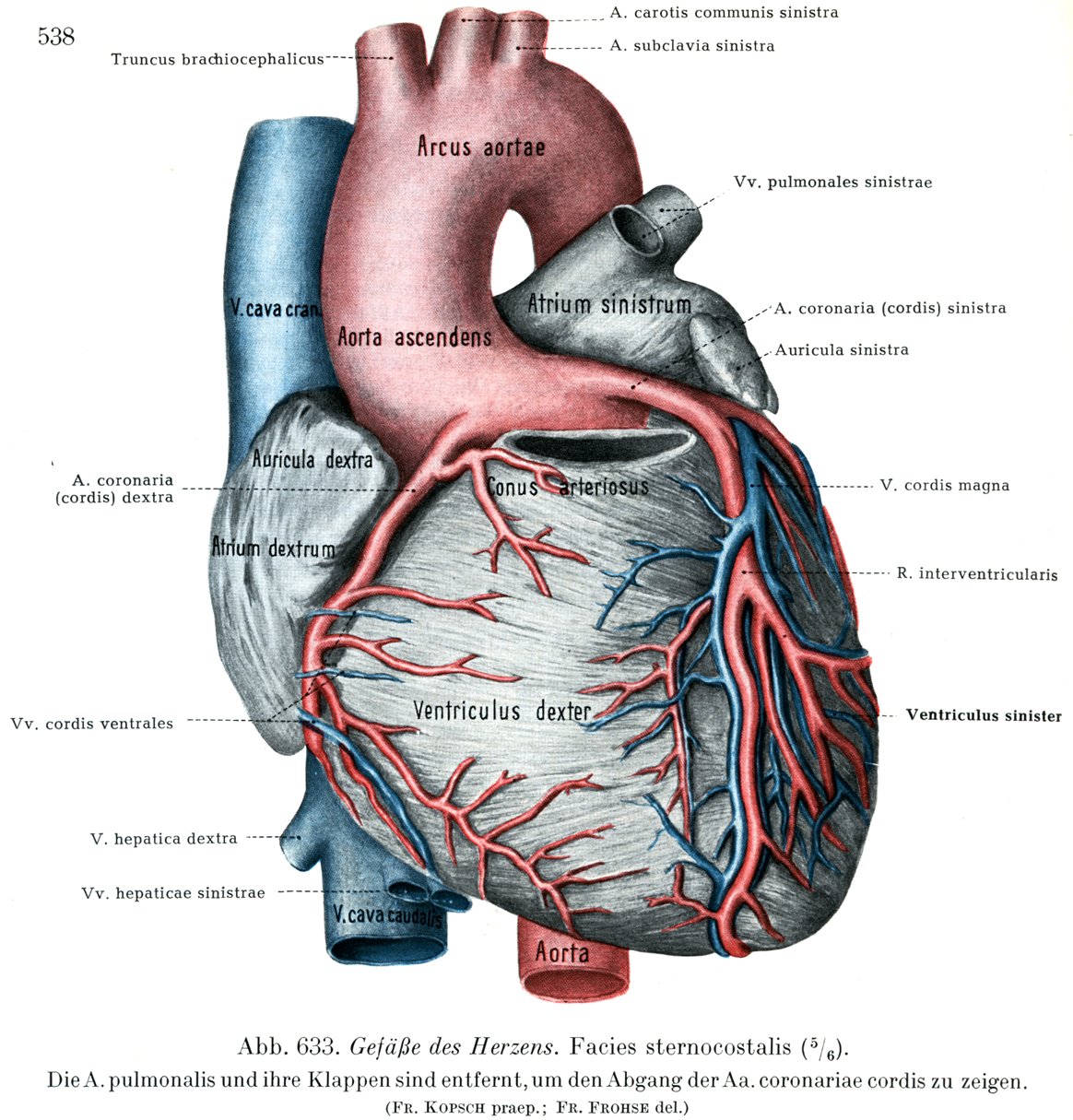 肺動脈とその弁を取除いて冠状動脈の出るところを示してある.