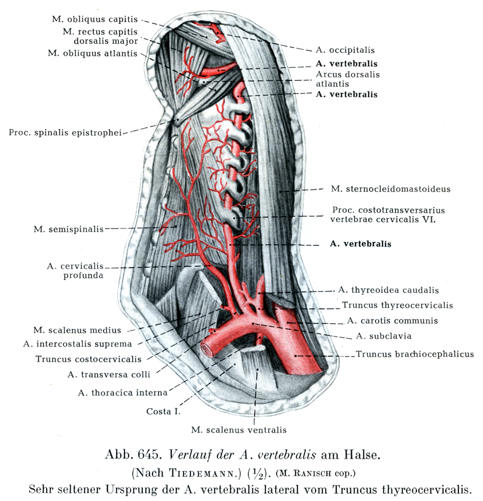 )椎骨動脈の起始が甲状頚動脈の外側にある非常にまれな場合である.
