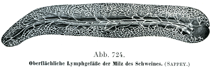 ブタの脾臓の浅層のリンパ管