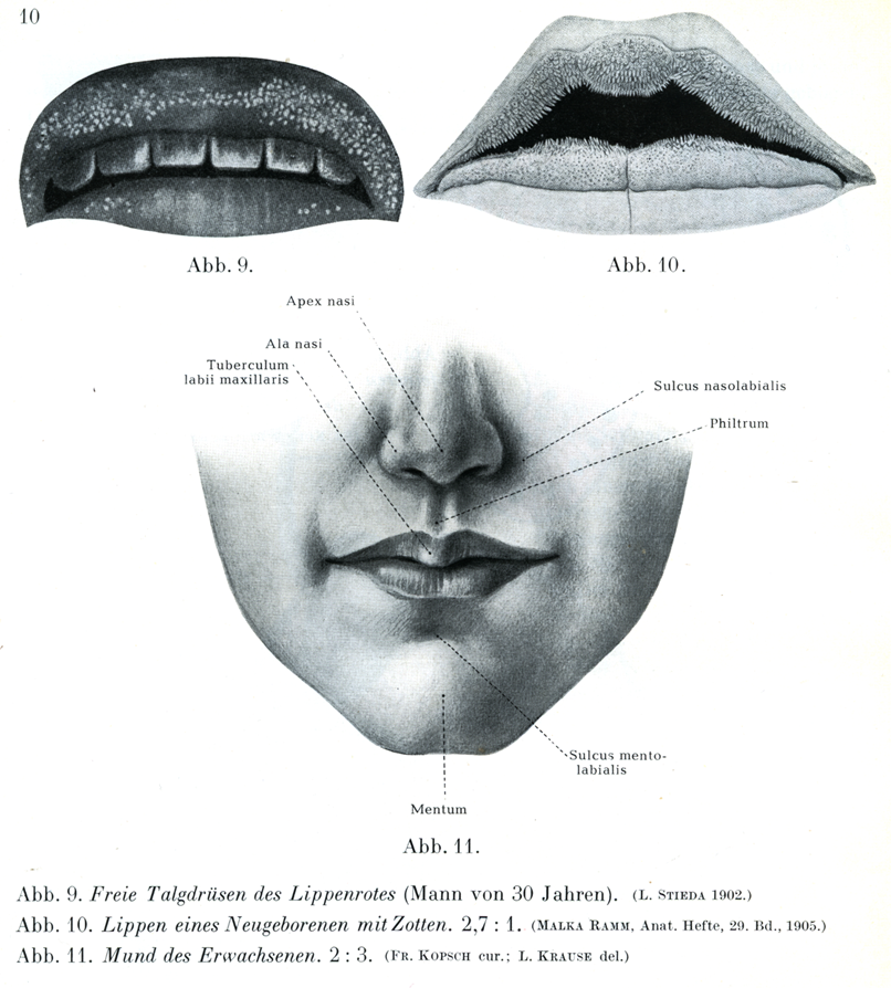 [図10]新産児の口唇(絨毛をもっている)×2.7 (Malka Ramm, Anat. Hefte, 29. Bd.,1905. )