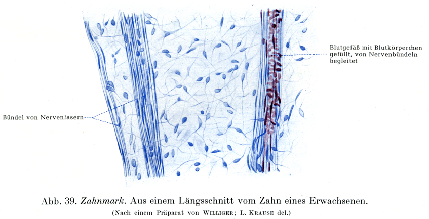 [図39] 歯髄 成人の歯の縦断標本の一部.(Willigerの標本による).
