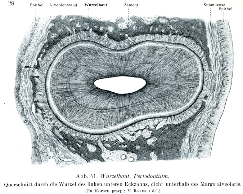 [図41] 歯根膜 下顎の左の犬歯の根を歯槽縁のすぐ下方の高さで横断したもの.