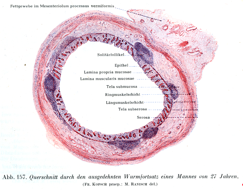 [図157]27才の男の虫垂をひろげて横断したもの.