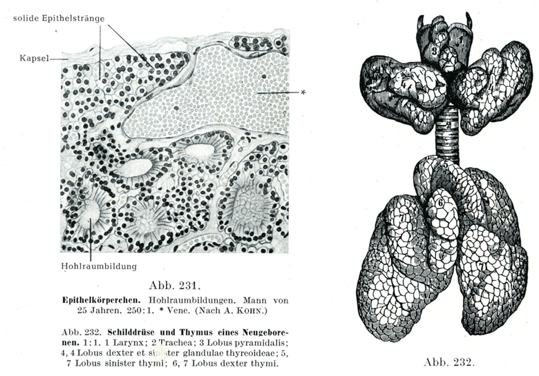 しかし胸腺は(Stöhr, Hammar)リンパ節に近縁な器官では決してなくて,ここで細網をなしている細胞は内胚葉性の上皮細胞からできたものである.しかし細網の網の目のなかにある小さい細胞は本当のリンパ球である(Hammarその他の学者).