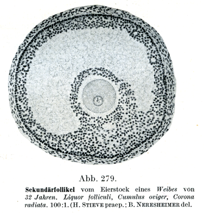 [図279]2次卵胞 32才の女の卵巣から.卵胞液,卵丘,放線冠.×100