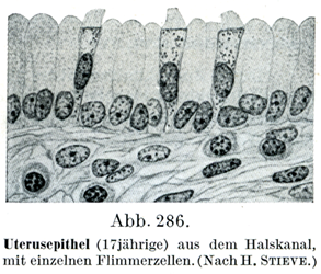 [図286]子宮の上皮(17才)少数の線毛細胞をもった頚管の上皮(Stieveによる).
