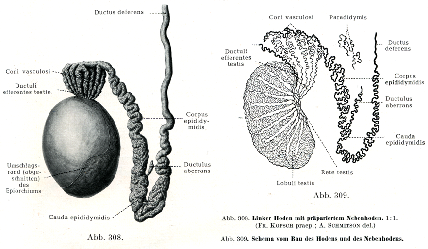 それに対して精巣上体の頭は本質的には輸出小管と精巣上体小葉,および精巣上体管の頭部からなっている(図308, 309).