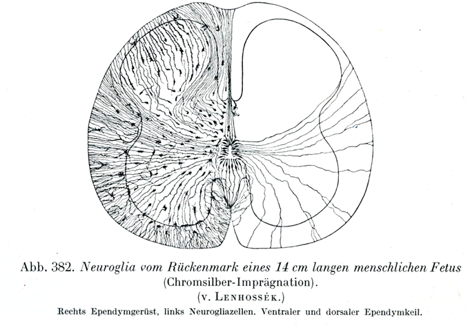 [図382]体長14 cmのヒト胎児の脊髄のグリア (クローム銀染色) (v. Lenhossék)