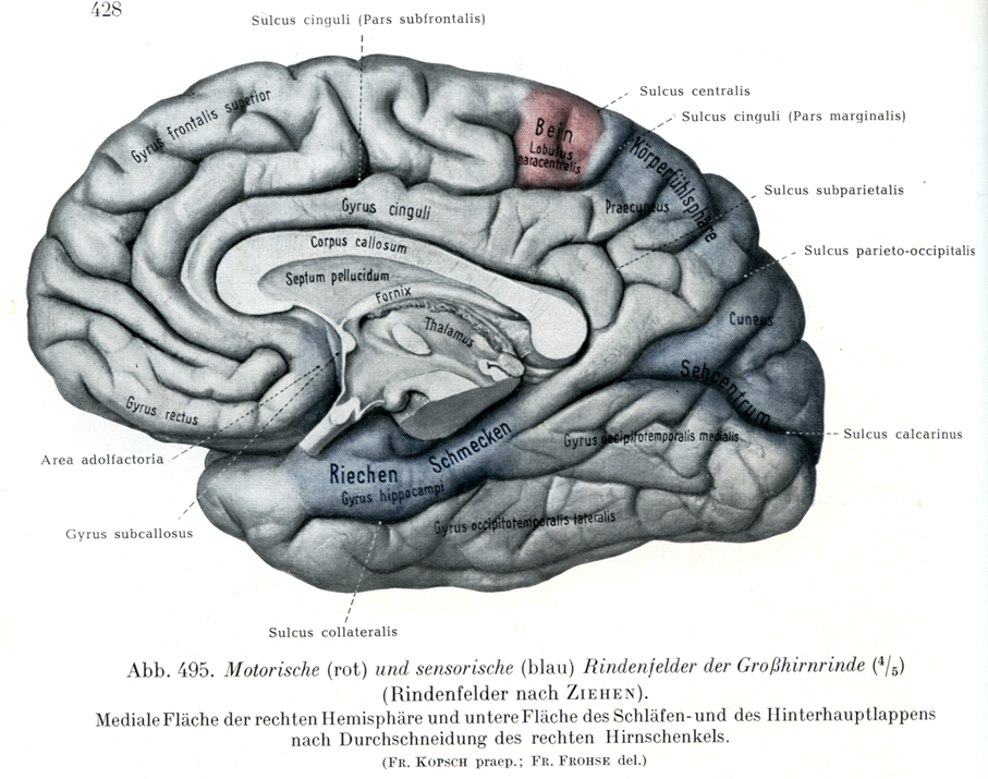 海馬傍回鈎と海馬足には嗅覚と味覚の中枢がある.嗅傍野も梁下回も嗅覚中枢Geruchszentrumに属している.--Bechterewによれぼ(図499)皮質の味覚中枢は頭頂弁蓋にあるという.