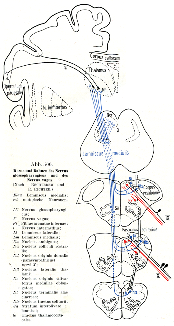[図500]舌咽神経と迷走神経の核および伝導路(BechterewおよびR. Richterによる)