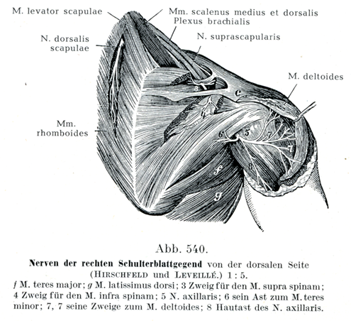 [図540]右肩甲部の神経 うしろがわから見る.(HirschfeldおよびLeveillé) 1/5