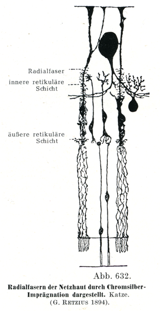 [図632]網膜の放線線維をクローム銀染色によってしめす ネコ(G. Retzus 1894)