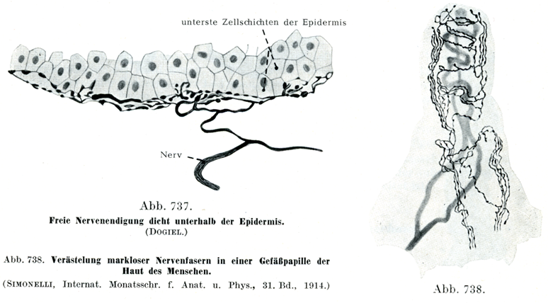 [図737]表皮のすぐ下にある自由神経終末(Dogiel)