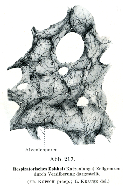 (ネコの肺) 細胞の境は鍍銀法であらわされている.