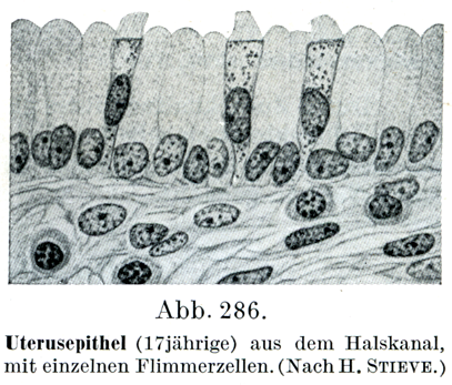 (17才)少数の線毛細胞をもった頚管の上皮(Stieveによる).