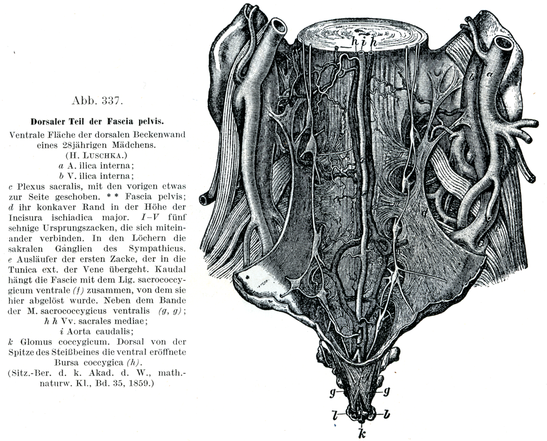 [図337]骨盤筋膜の後部 骨盤後壁の前面,23才の少女.(H. Luschka)