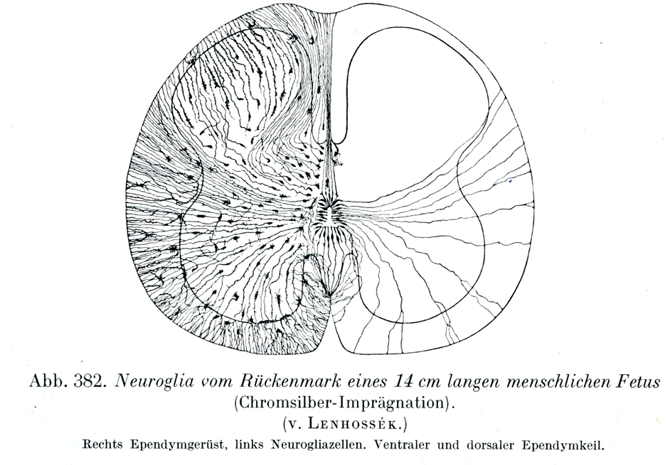 [図382]体長14 cmのヒト胎児の脊髄のグリア (クローム銀染色) (v. Lenhossék)