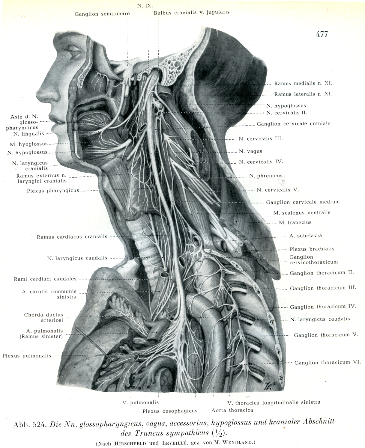 交感神経幹の上部・舌咽神経・迷走神経・副神経・舌下神経