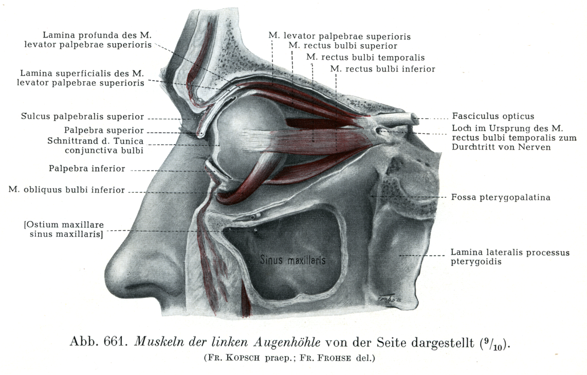 左の眼窩内の諸筋を左側からみる