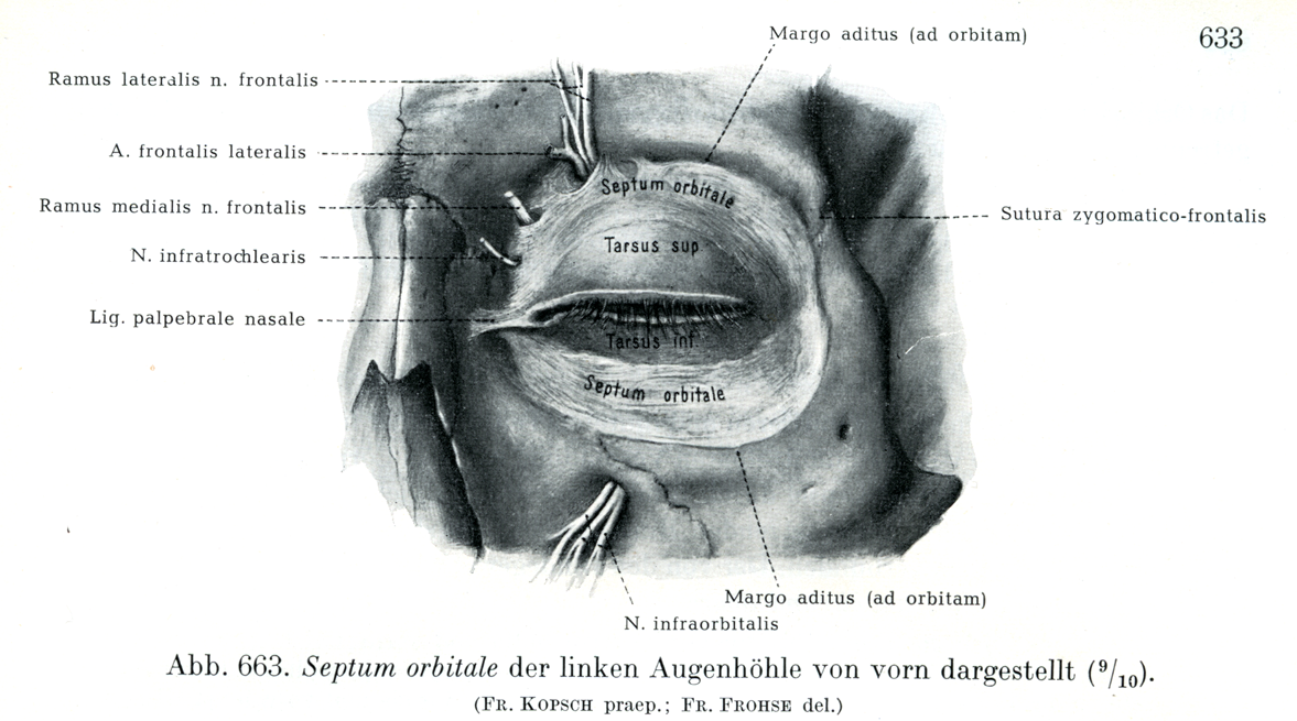 左の眼窩の眼窩隔膜を前方からみる.