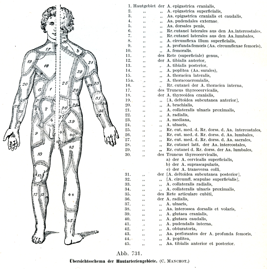 [図731]皮膚動脈の分布領域を示す概観模型図(C. Manchot)