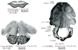 外側部(後頭骨の)【がいそくぶ(こうとうこつの)】 The part that is lateral to the foramen magnum.(後頭骨の外側部は大後頭孔の両側にある部分で、下面に後頭顆がある。そのやや外側の前縁には頚静脈切痕という切れ込みがあり、これは頚静脈孔の壁の下半を作る(壁の上半は側頭骨の同名の切痕)。この頚静脈孔は後頭骨および側頭骨から出る小さい[頚静脈]孔内突起によって前後の2部に分かれる。前部は小さく、舌咽神経、迷走神経、副神経、および下錐体静脈洞がここを通る。後部は大きく、内頚静脈の通路である。頚静脈切痕の後方の骨部は外側方に突出して頚静脈突起となり、その肥厚した外側縁は側頭骨の岩様部と軟骨性に結合する。外側部の下面には大後頭孔の前半の両側にあたり、後頭顆が突出する。その表面は滑らかで、少し外方に傾斜した楕円形の凸面で、その長軸は前内側から後外側に向かう。後頭窩は環椎の上関節窩に対する関節頭をつくる。横溝(外側部と底部が別個に形成され、癒着した部にあたる)によって前後に2分されることもある。また、正中面に対する角度には個人差が大きい。後頭窩の基底部を後内方から前外方に斜に舌下神経管が貫く。後頭顆の後には顆窩があり、顆導出静脈が通る顆管がここに開く。顆管の太さは個人差がはなはだしく、同一個体でも両側のものの差が著しいことが少なくない。外側部の上面には後頭窩の上に相当して頚静脈結節があり、それが大後頭孔に向かう面の基部に舌下神経管の内口が開く。頚静脈突起は上面ではとくに突隆し、それを後から内前方へS状洞溝の末端がめぐって頚静脈切痕の後縁に達している。顆管の内口が明瞭に見られるときは、この屈曲点よりやや前方に位置することが被い。)