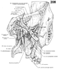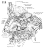 翼突鈎【よくとつこう】 Hooked process on the end of the medial plate of the pterygoid process.(翼状突起の内側板の下端は鈎形に外方に曲がって翼突鈎を作る。翼突下顎縫線という靱帯が起始する。)